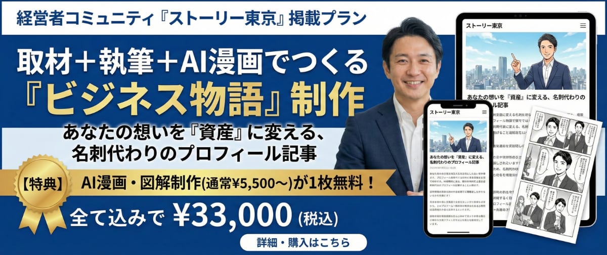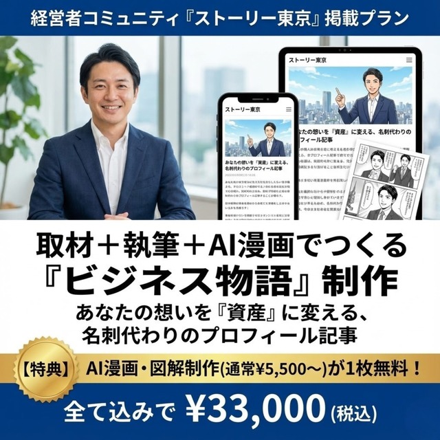 【ストーリー東京(各県対応)掲載】取材+執筆+AI漫画で作る「ビジネス物語」制作プラン(全部入り)