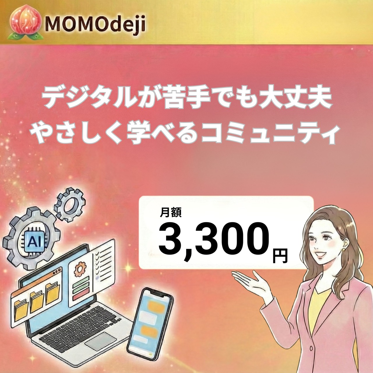 デジタル苦手でも安心|やさしく学べるコミュニティ(月額3,300円)